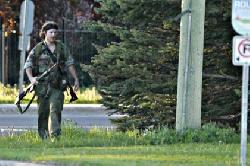 Стрельбу открыл 24-летний житель города Монктон Джастин Бурк (Justin Bourque). Полиция через твиттер распространила фотографиюподозреваемого — это белый мужчина в камуфляжной одежде с двумя винтовками.
