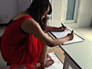 Чэнь также учится одновременно писать иероглифы и слова латиницей. Впрочем, говорит, что китайское письмо даётся ей легче.