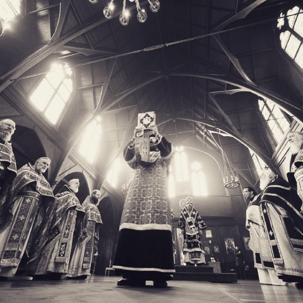 7. Литургия Преждеосвященных Даров в Старом соборе в Сан-Франциско. Храм построен полностью из красного дерева (секвои) и является исторической достопримечательностью города.