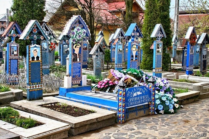 Странная, но весьма забавная традиция устанавливать яркие надгробия появилась в городке еще в 1935 года, когда плотник по имени Stan Ioan Patras при похоронах своей жены сделал для нее необычное надгробие. Этот факт вызвал волну негодования среди общественности, и на плотника было даже написано донесение самому Чаушеску. Однако, по прошествии нескольких десятилетий на том месте можно насчитать уже более 800 могил с подобным оформлением. Само кладбище получило название Cimitirul Vesel («Веселое кладбище»).