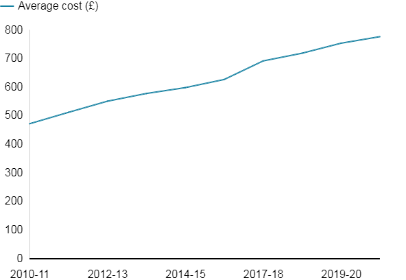 Prices for 2020-21 range from £392 in Belfast to £995 in Worthing, West Sussex.