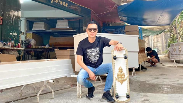 As the popularity of board sports exploded in Thailand, and the price of a skateboard skyrocketed, Anusorn Yungyearn decided to breathe new life into some of the wooden caskets he had lying around his Bangkok workshop.