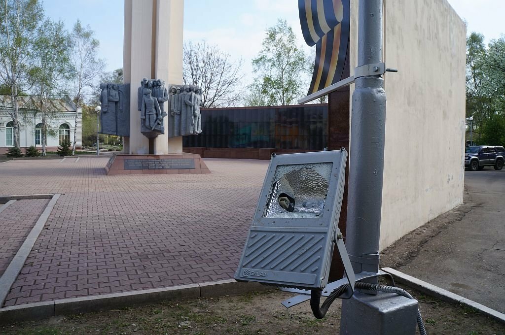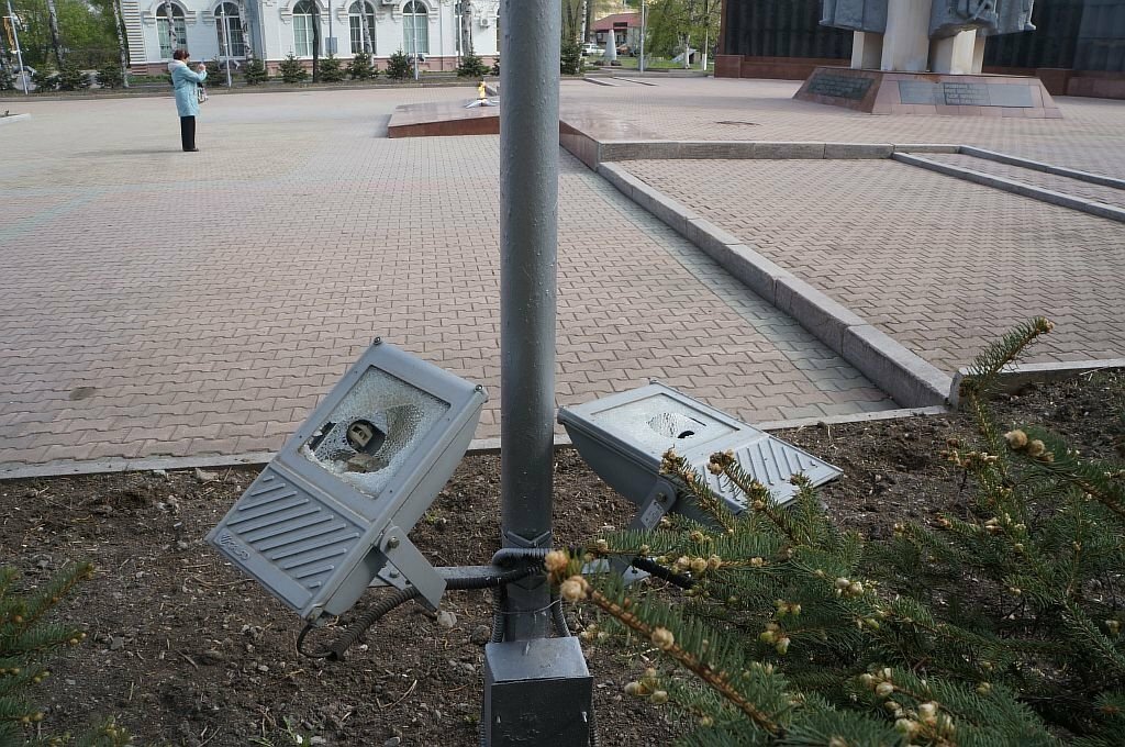 Как сообщается, неизвестные пока вандалы разбили 14 прожекторов, освещавших мемориал, расположенный на площади Победы.