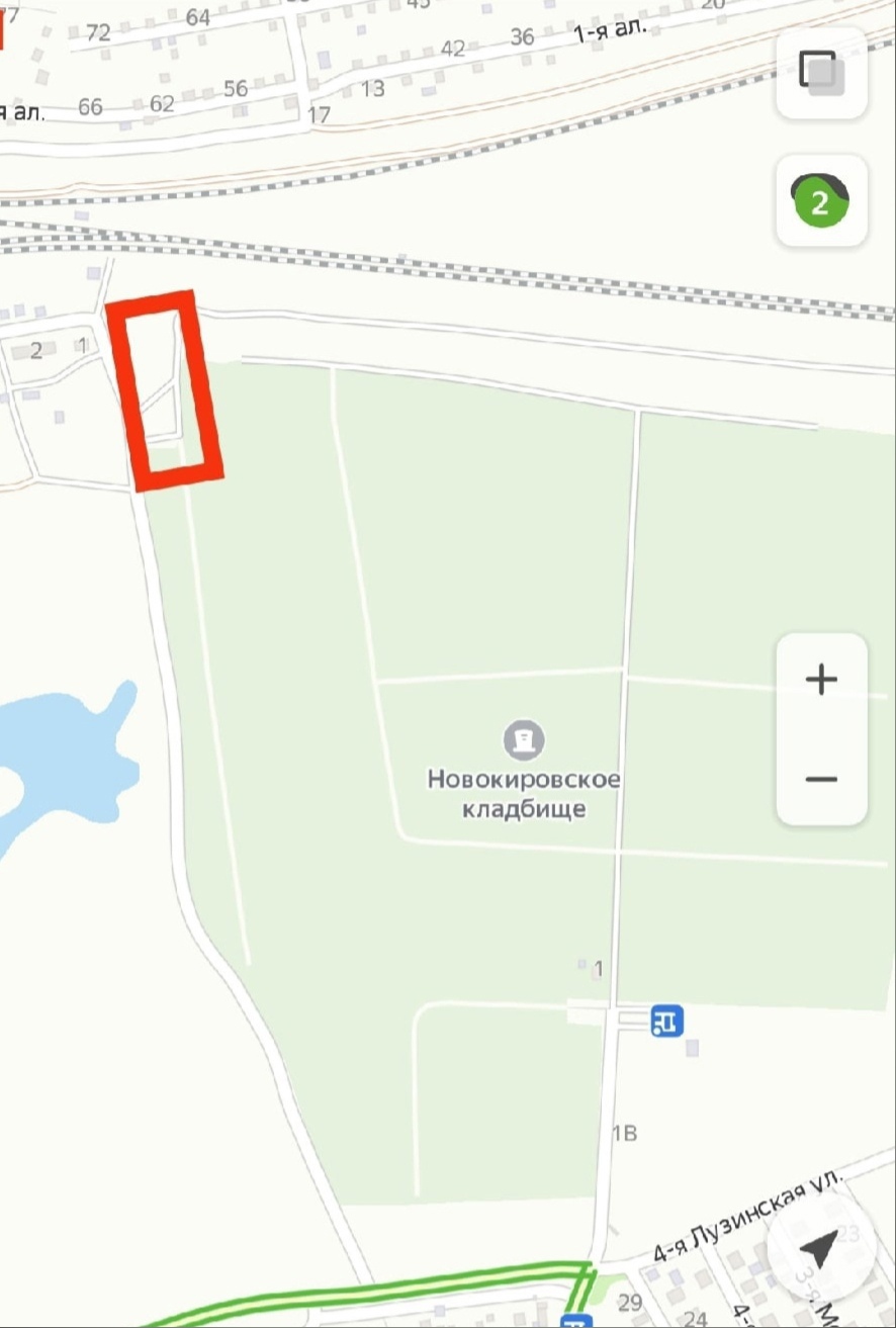 Также по сообщению пользователя, администрация Ново-Кировского кладбища снесла лесополосу, которая была практически санитарным ограждением между территорией захоронений и обыкновенными жилыми домами.