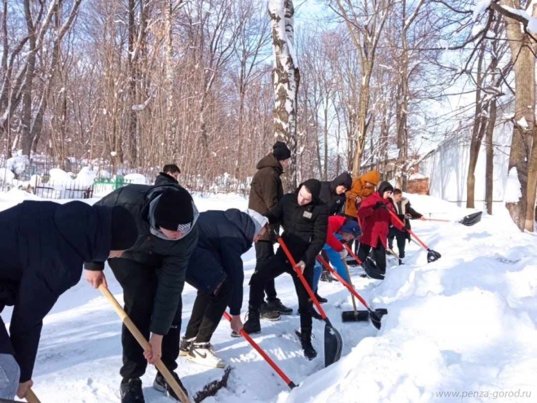 В Пензе состоялась молодежная волонтерская акция «Память поколений». Так, в преддверии Дня защитника Отечества студенты Пензенского колледжа транспортных технологий очистили от снега Мироносицкое кладбище.