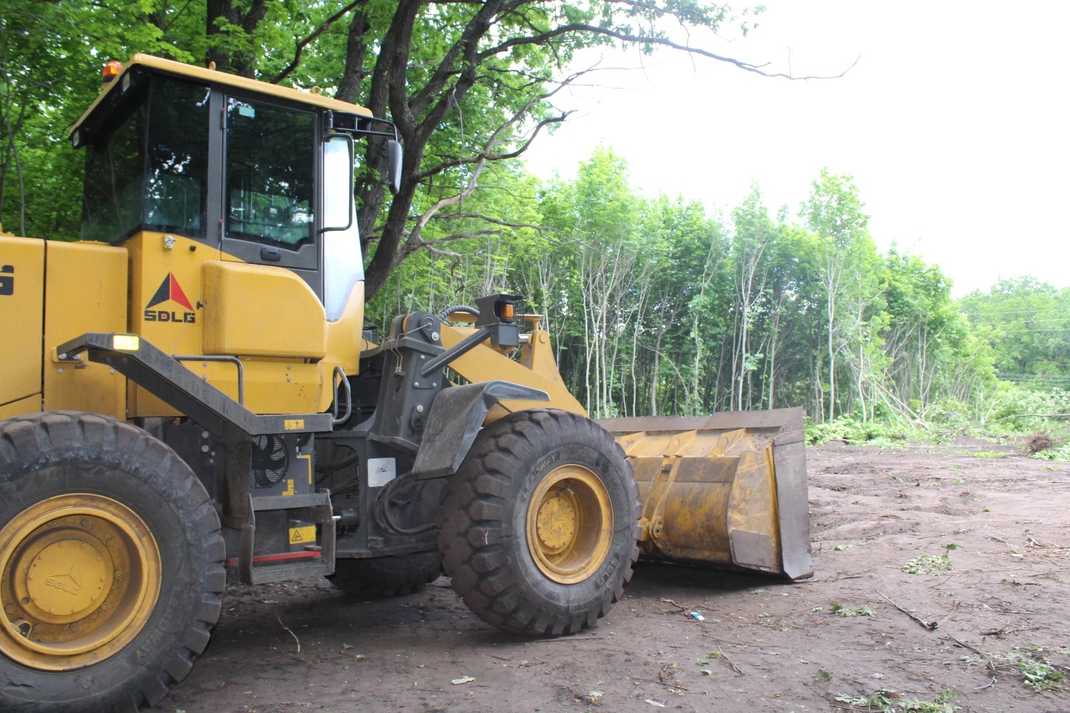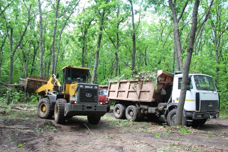 Грейферы срезают кусты и разросшийся кленово-вязовый подлесок, и вместе с мусорными кучами отправляют их в кузова авто.