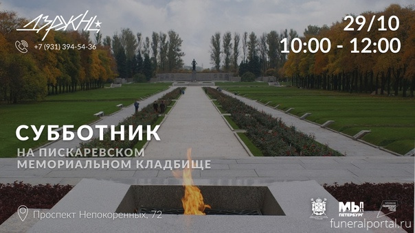В рамках проведения Субботника планируется уборка на территории Пискаревского мемориального кладбища , а также экскурсия по мемориалу.