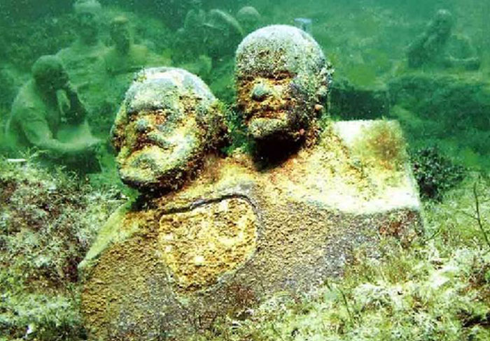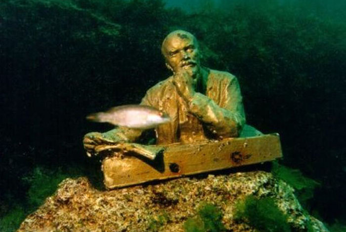 На дне Черного моря в восточной части Крыма находится едва различимая достопримечательность. На нескольких метрах ниже уровня моря находятся 50 бюстов бывших лидеров коммунистической партии СССР, наполовину погребенные под толщей песка. Известная, как «Аллея вождей», эта экспозиция выглядит мрачно и странно.